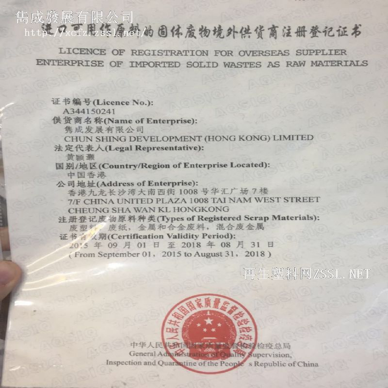 | (香港)雋成發展有限公司长期供应期货:LDPE废膜、HDPE杂瓶、HDPE牛奶瓶、HDPE桶、HDPE破碎料,各类PET瓶砖,各类PP,PC,ABS,PC+ABS,硬杂料和其他廢塑料【现货广东】。我们釆购的理念是直接对国外的打包埸,现货照片,现货装柜,並提供打包埸的代号給客户定名货的質量,以便跟踪,並达到長期货源穏定的效果,務求做到真真正正第一手货源。 合作联系 黄生:13911474704,香港+85290787102;微信:allanwong1980 ;邮箱:Allanwong@chunshing.hk